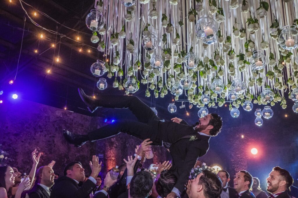 Si tuviéramos una lista de los invitados más divertidos y dispuestos a celebrar puntualmente desde la ceremonia, sin duda tendríamos a varios de esta increíble boda.