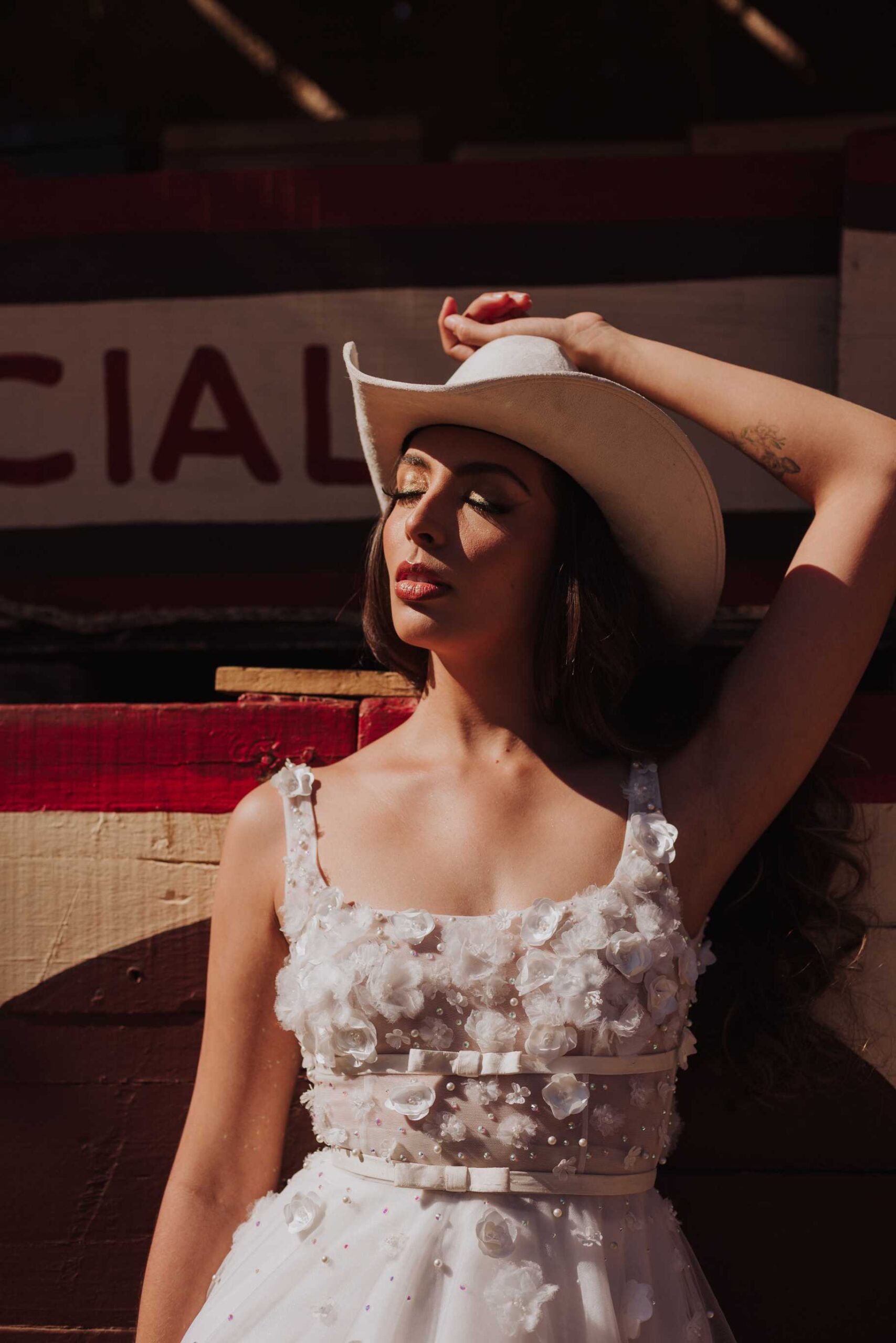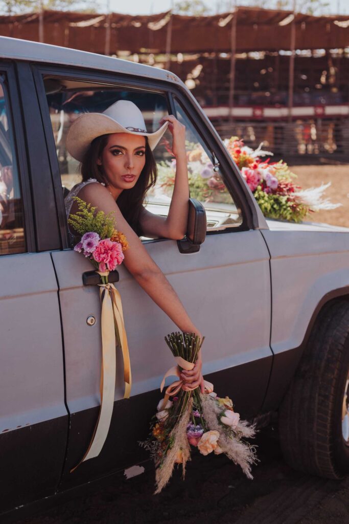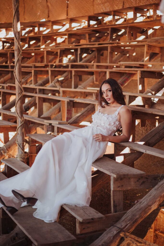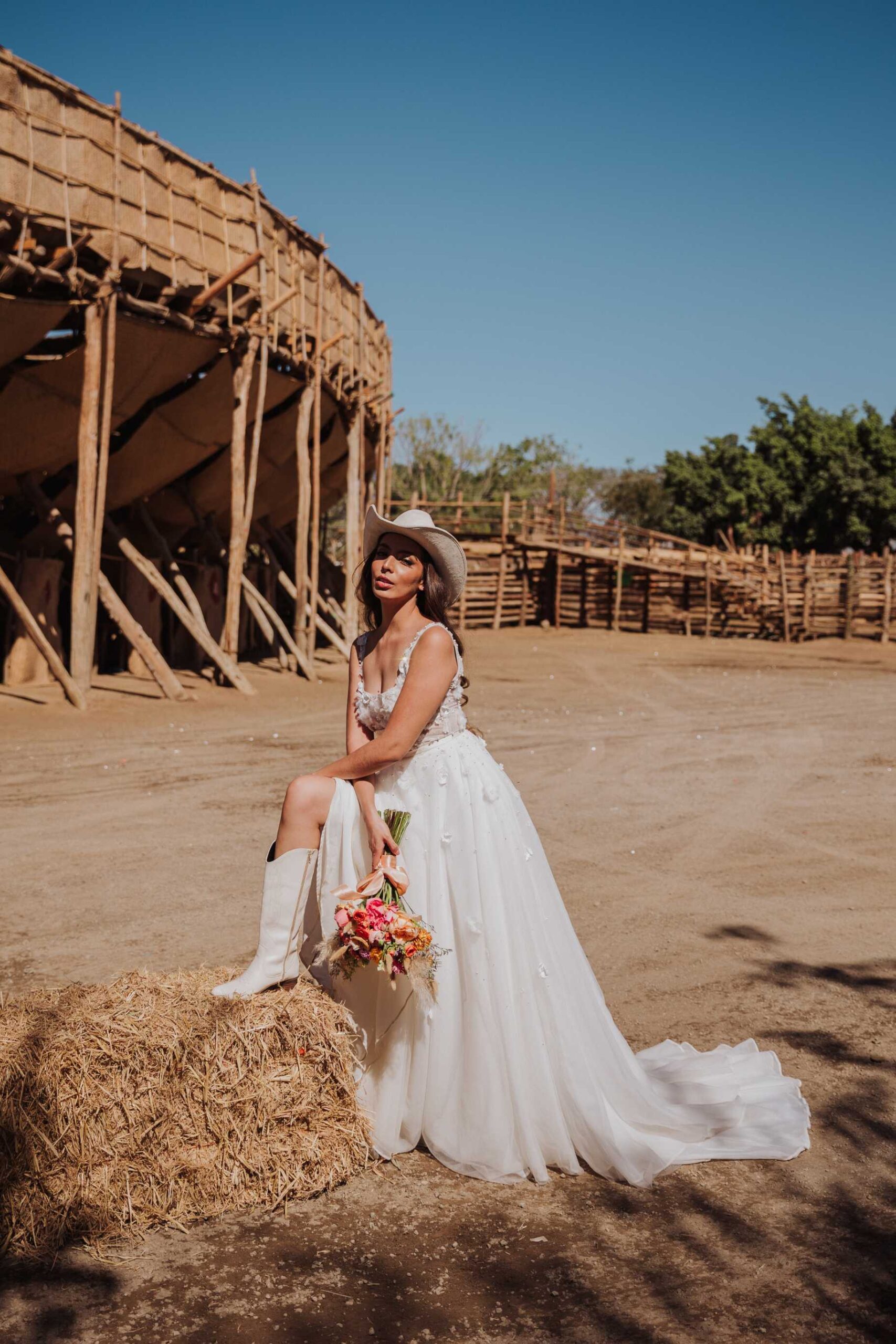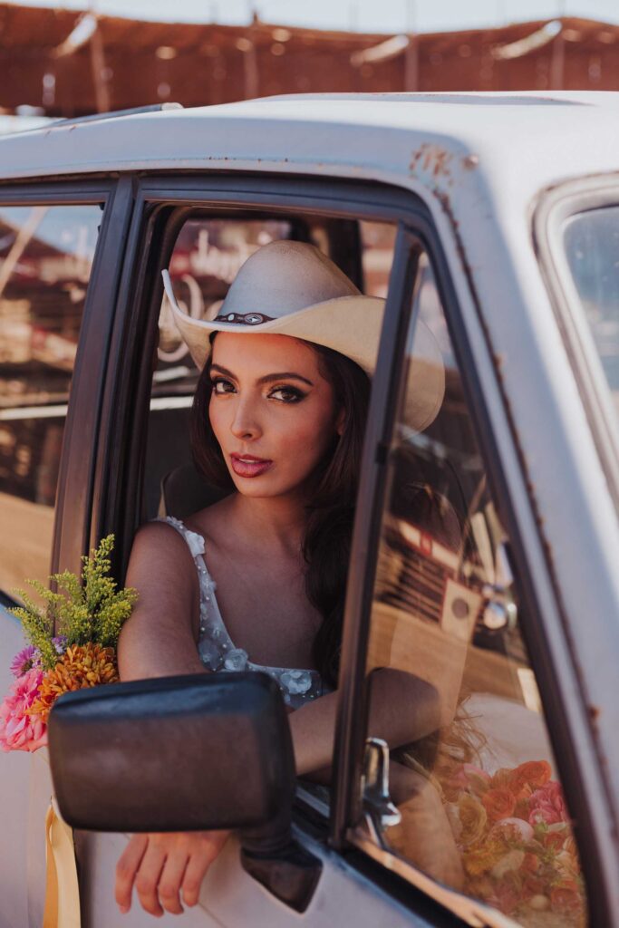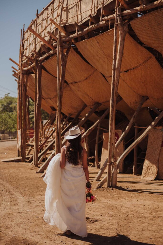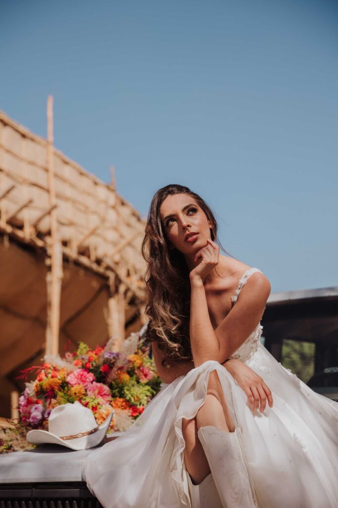 Le llaman La Petatera porque está hecha prácticamente solo de 3 materiales: petate, lazo y madera. Este símbolo de Colima nos inspiró a hacer un shooting de fotos estilo cowgirl porque justo así es el look de los que visitan la Petatera: botas, jeans y un sombrero con estilo vaquero.